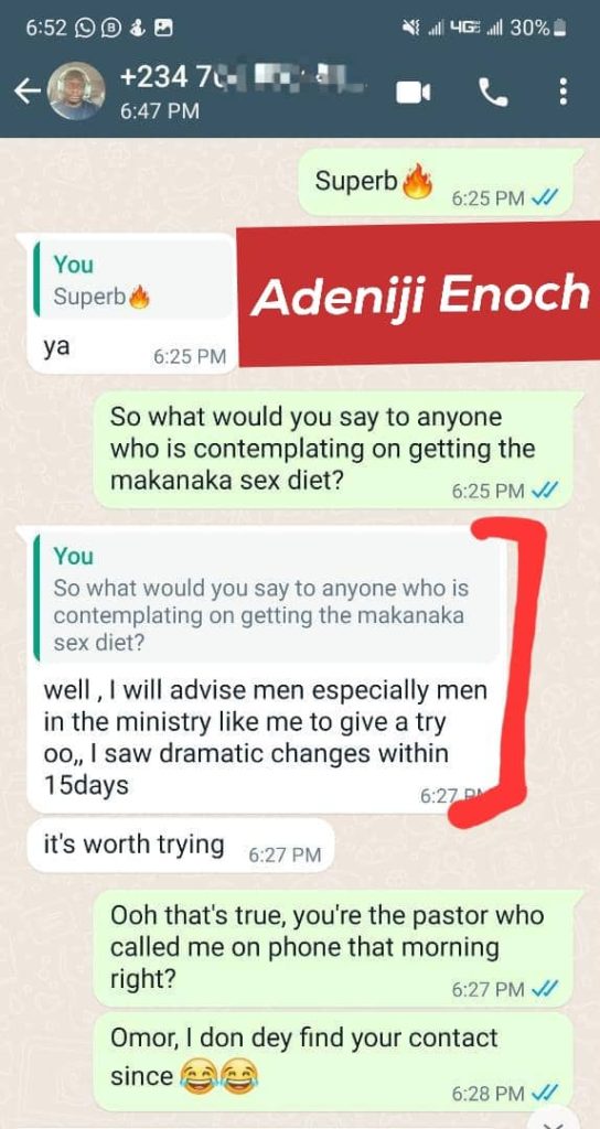But after our discussion, I realized the makanaka sex diet is all he needs so I gave him my account and he paid.