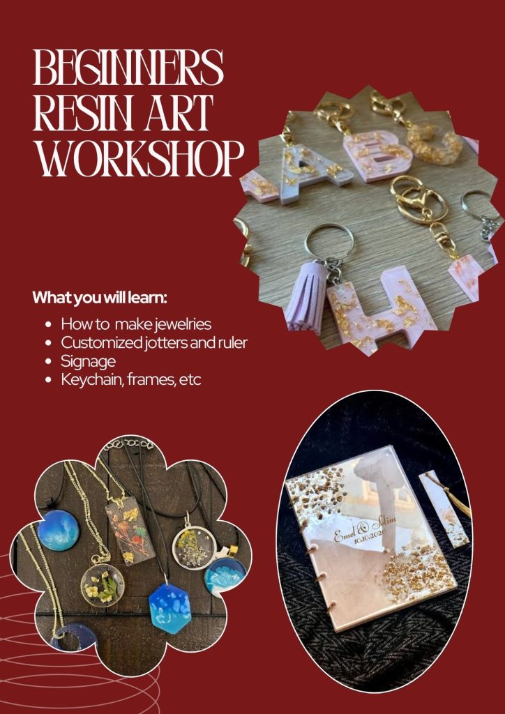 You’ll be taught from the scratch on customized signage, jotter and so many beautiful resin art pieces